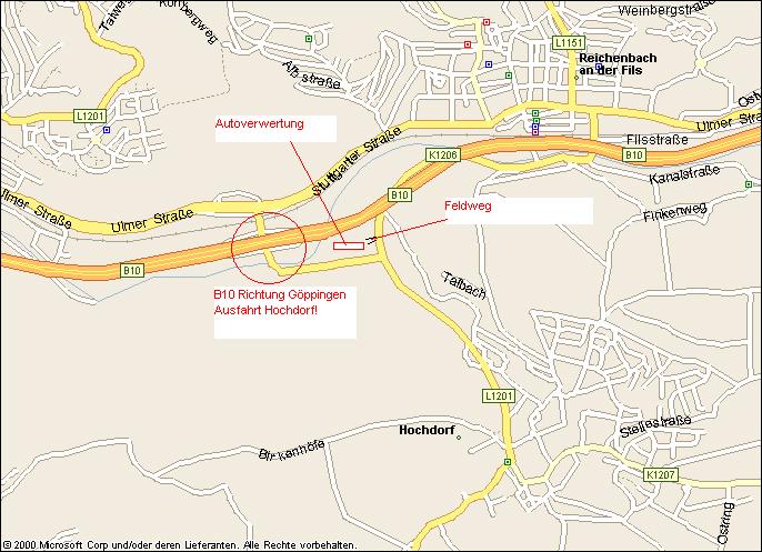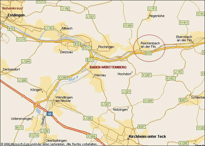 Von der A8 kommend auf die B313 Richtung Plochingen. Am Dreieck Plochingen auf die B10 Richtung